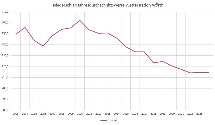 In den Reverenzjahren von 1994 bis 2013 (20 Jahre) sind im Durchschnitt im Jahr 750,5l/m² Niederschlag gefallen.