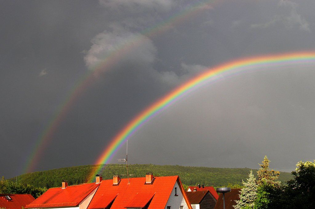 Wenn bei Regen die Sonne scheint und diese tiefer steht als die Regenwolken entsteht ein farbenprächtiger Regenbogen.